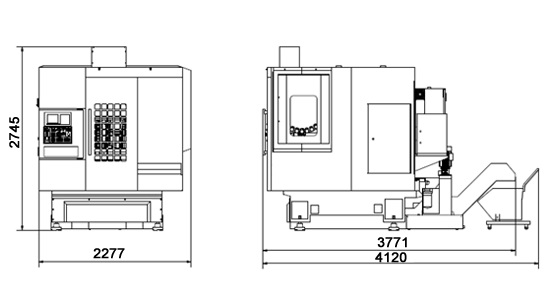 - 移動件架高的鑄件,主軸鼻端與三軸軌道滑塊距離最短,加工時剛性最佳。